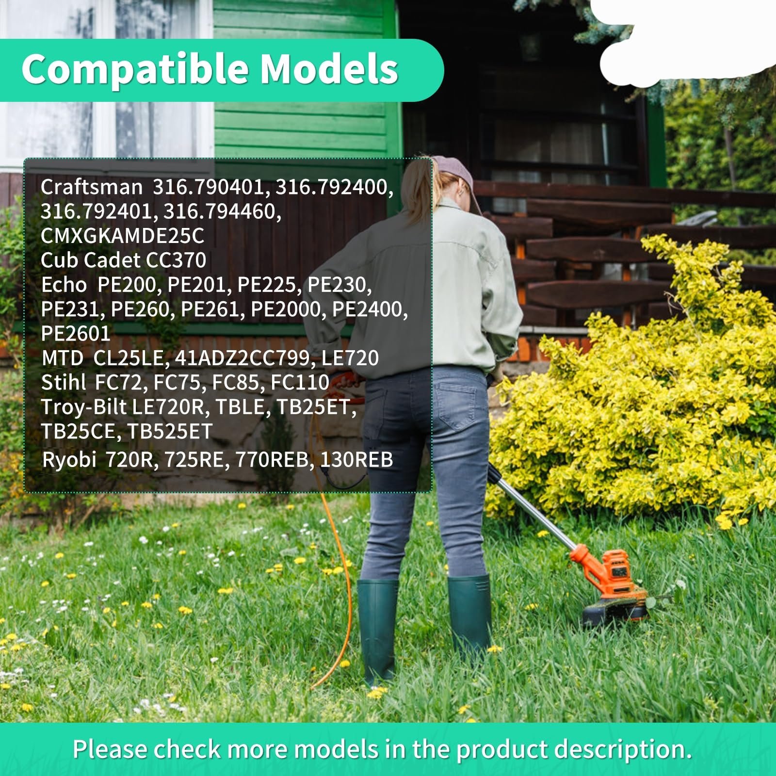 - Ccompatible with: Echo PE200, PE201, PE225, PE230, PE231, PE266, PE2400, PE2601; Troy-Bilt LE720R, TB25ET; Ryobi 720R, 725RE, 130REB, Cub Cadet CC370, Craftsman 316.790401, 316.792400, 316.792401; MTD CL25LE, etc. For more models, please refer to the descriptions.