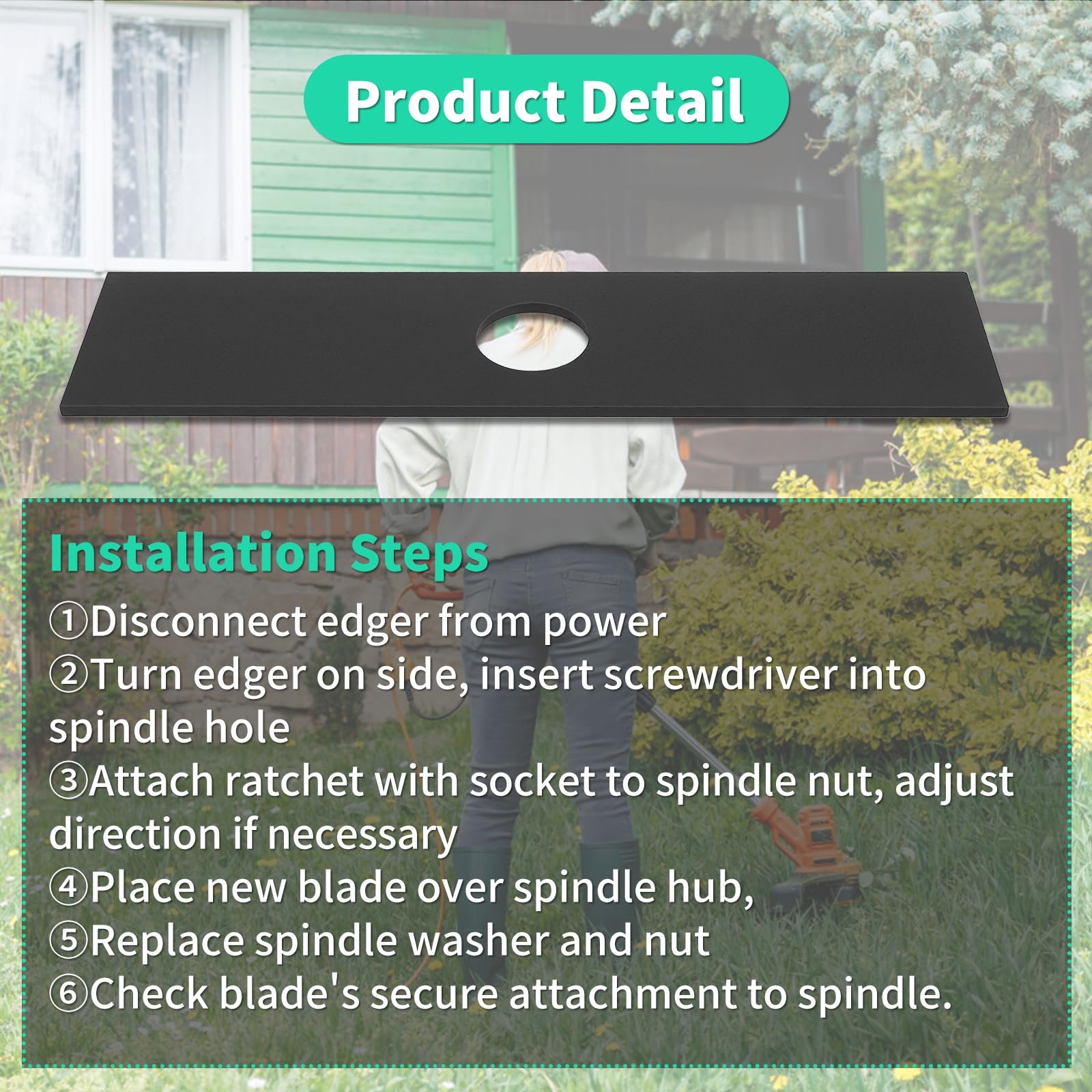 - Easy Installation: These cutting blades present a pragmatic approach to preserving the sharpness and precision of your edger. Once one side of the blade has seen wear, it can be simply flipped over for utilization on the other side. Moreover, the installation process is straightforward.