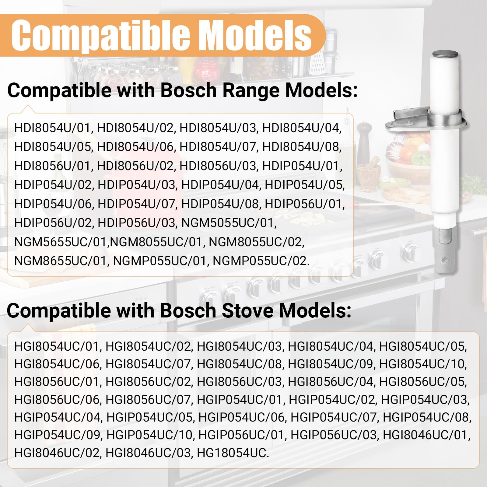 - Compatible with Bos-ch Stove Models: HGI8054UC/01,02,03,04,05,06,07,08,09,10, HGI8056UC/01,02,03,04,05,06,07, HGIP054UC/01,02,03,04,05,06,07,08,09,10, HGIP056UC/01,03, HGI8046UC/01,02,03, HG18054UC, etc.